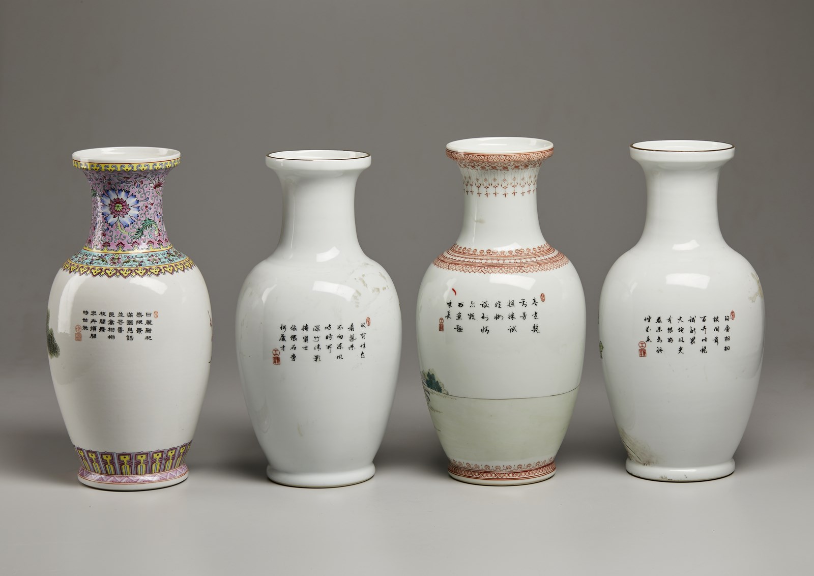 Arte Cinese Lotto composto da quattro vasi famiglia rosa con iscrizioni