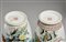 Cina, prima metà XX secolo . . Cm 36,50. Gruppo di vasi a balaustro in porcellana decorata nei colori della famiglia rosa con personaggi, motivi vegetali e floreali e uccelli su rami fioriti. Lunghe iscrizioni spesso presenti sul retro.