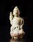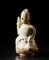 . . Cm 9,00 x 17,70. Piccola scultura in grès porcellanato raffigurante un membro della corte seduto con simboli sacri in mano.