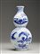 vaso bianco e blu a forma di doppia zucca con marchio a quattro caratteri sulla base (h. 27 X l. 13);