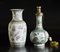 Cina, dinastia Qing, XIX secolo. . Cm 43,50. Lotto composto da vaso a balaustro in porcellana a decoro Canton e grande vaso globulare wucai montato a lampada.