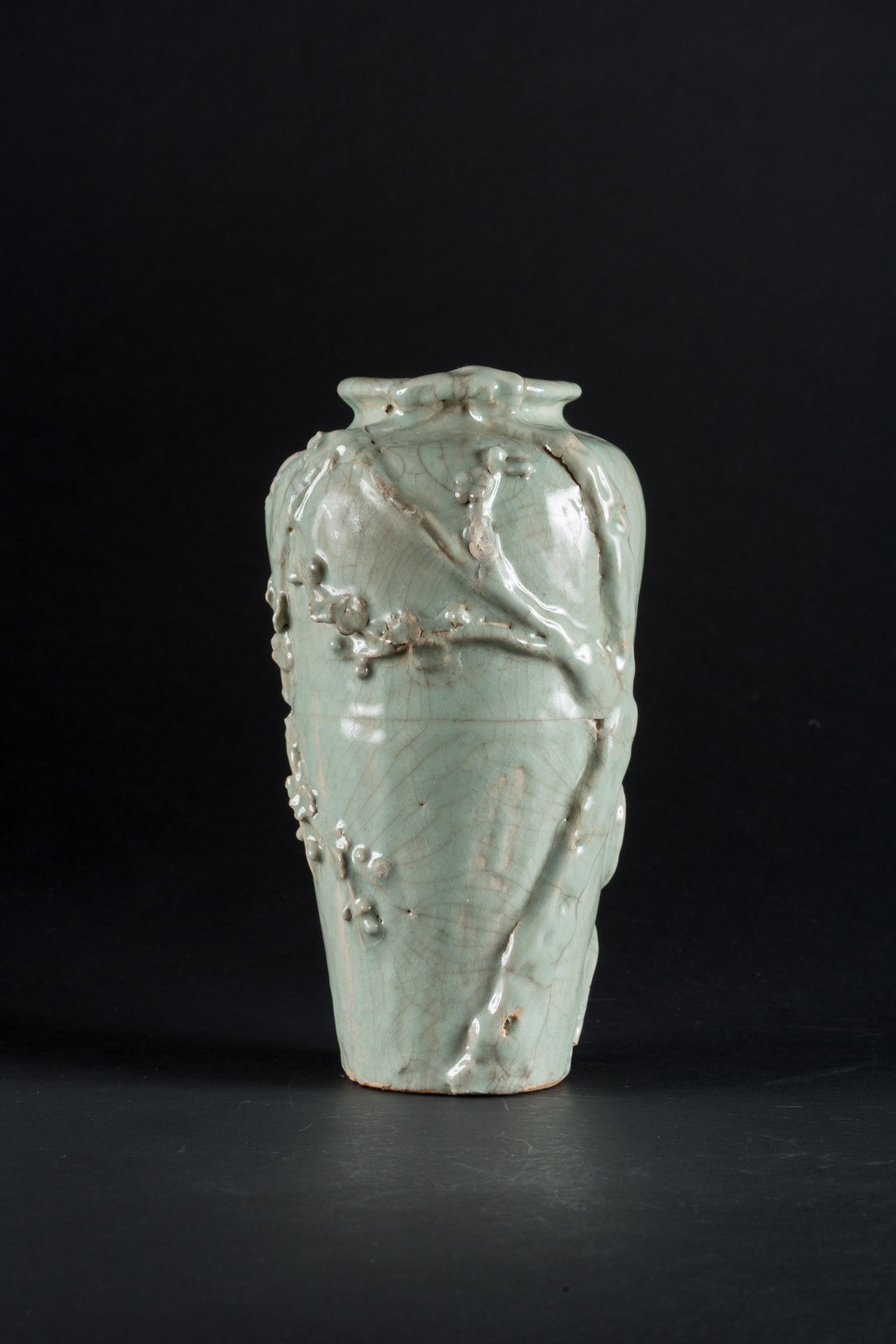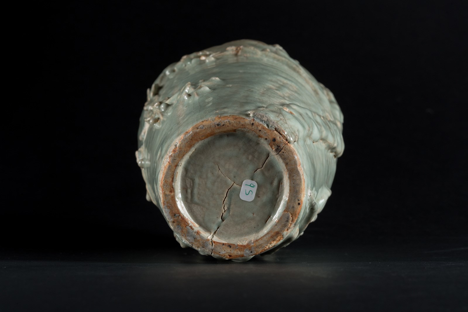 Arte Cinese - Vaso celadon in terracotta stampata e ricoperta di invetriatura turchese Cina, dinastia Yuan o Ming .