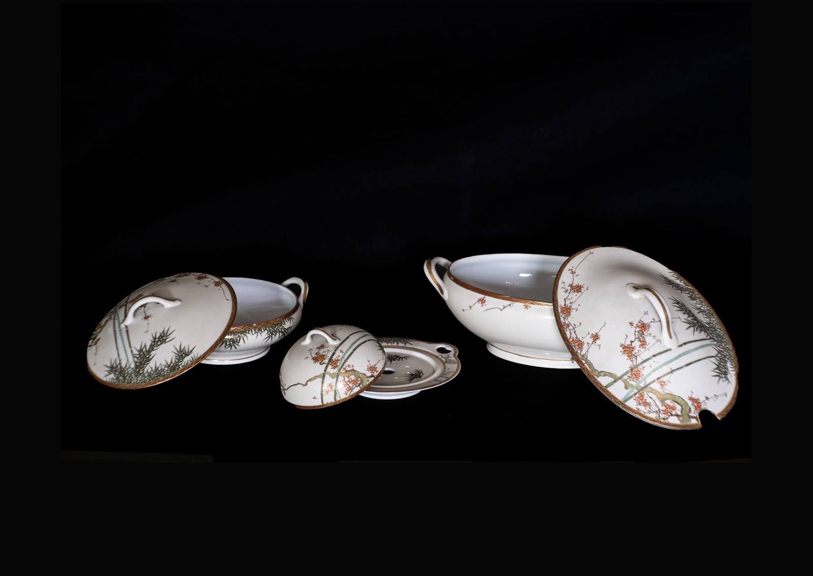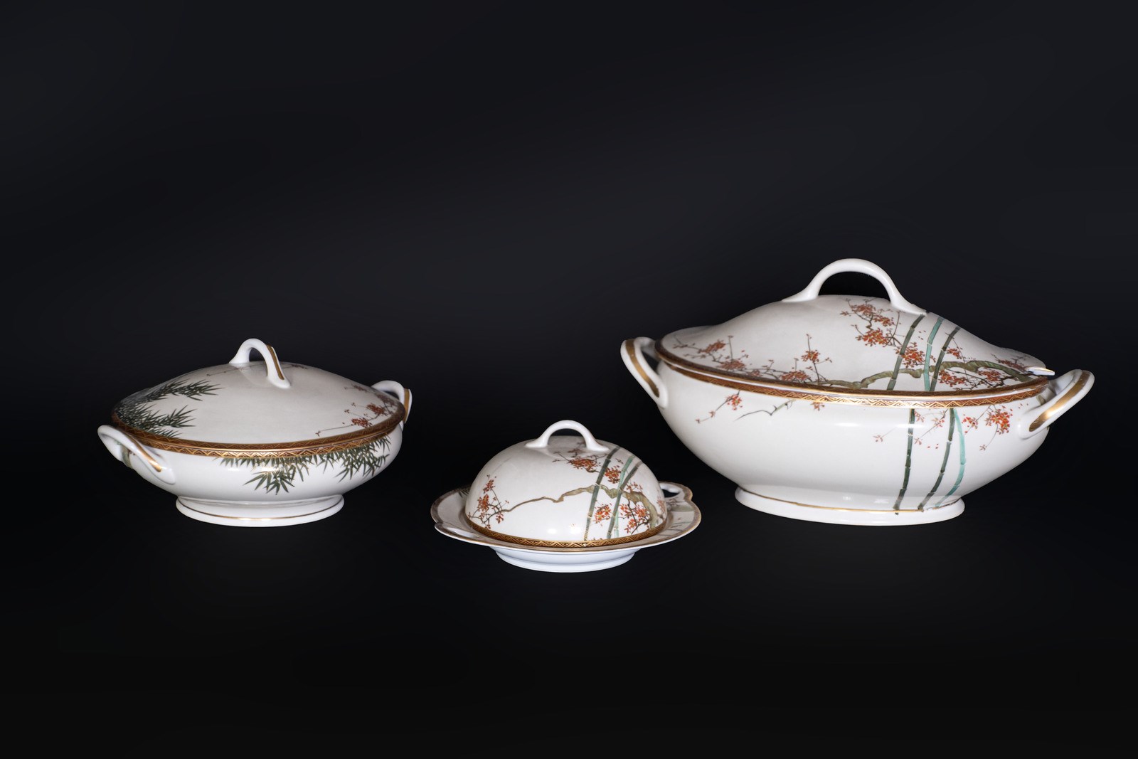 ARTE GIAPPONESE Lotto composto da zuppiere e scaldavivande in porcellana bianca