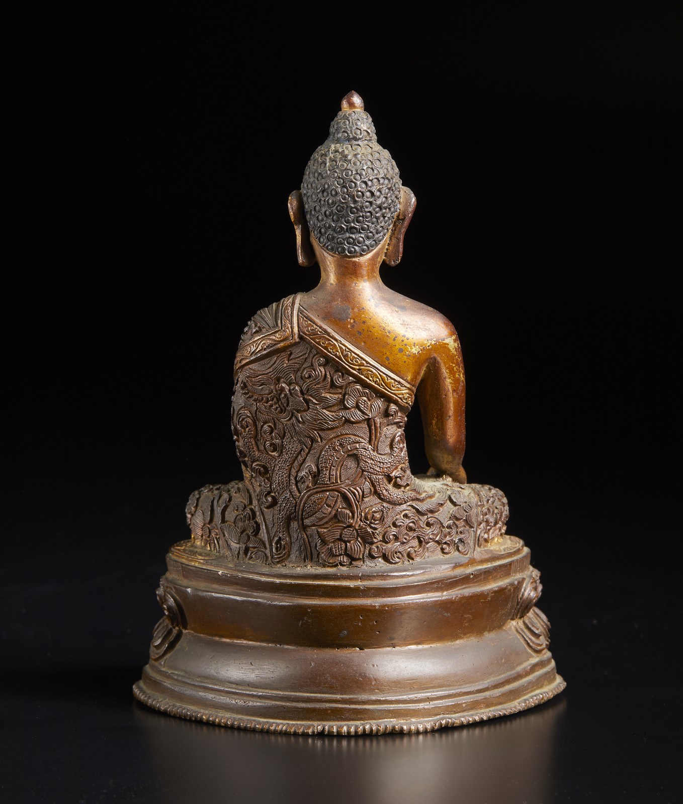 Cina, XX secolo. . Cm 18,00. Lotto composto da piccola fusione in bronzo raffigurante Buddha assiso (h. 15 cm), un bruciaprofumi in bronzo con coperchio traforato ed una teiera in bronzo (entrambi alti 9cm).