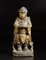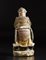Cina, dinastia Ming, XVI secolo . . Cm 38,50. Intaglio in legno laccato e dorato raffigurante il guardiano buddista in abiti sontuosi ed atteggiamento devozionale.