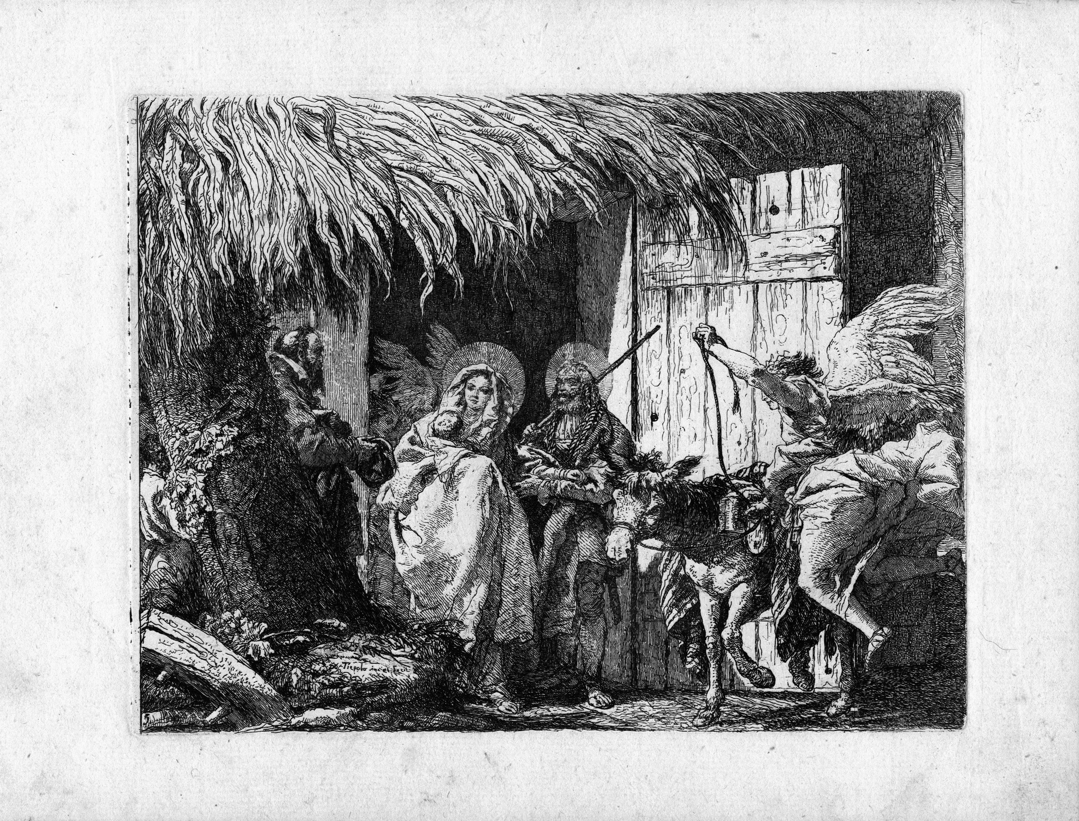 Firmata in basso a sinistra sulla lastra. Quinta tavola da Idee pittoresche sopra la fuga in Egitto, serie di 27 tavole (incluso il frontespizio, un titolo e la dedica) pubblicate a Wurzburg nel 1753 e dedicata al Principe Carlo Filippo di Greinffenklau. II stato su 2 dopo la numerazione.