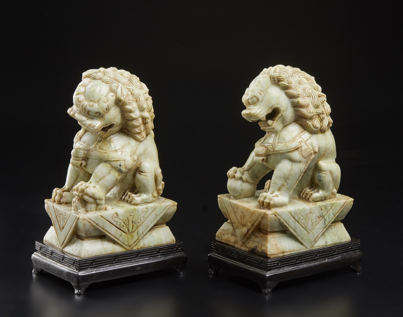 Arte Cinese - Coppia di cani di pho in giada Cina, XX secolo .