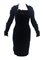 Abito attillato con fodera in velluto nero con ampia scollatura caratterizzata da un fiocco. Cerniera laterale e due brevi spacchi nella parte posteriore. Made for Neiman Marcus e' un'edizione limitata realizzata in Inghilterra nei primi anni '90. Taglia uk 10. Perfettamente conservato.