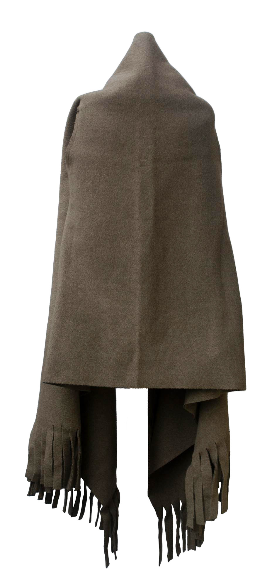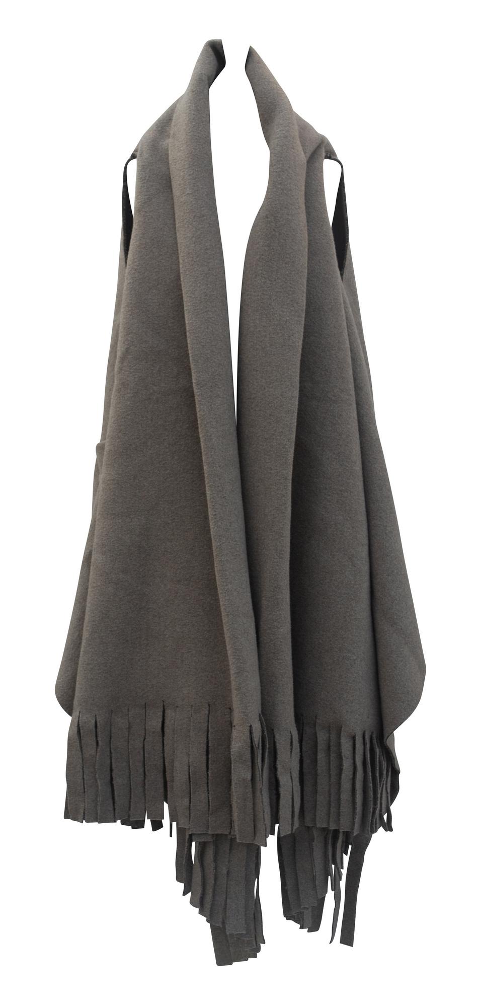 Blanket cape without sleeves, unlined, fringes, pockets, cut out raw edges. Late 90's, made in England. One Size. Excellent condition.