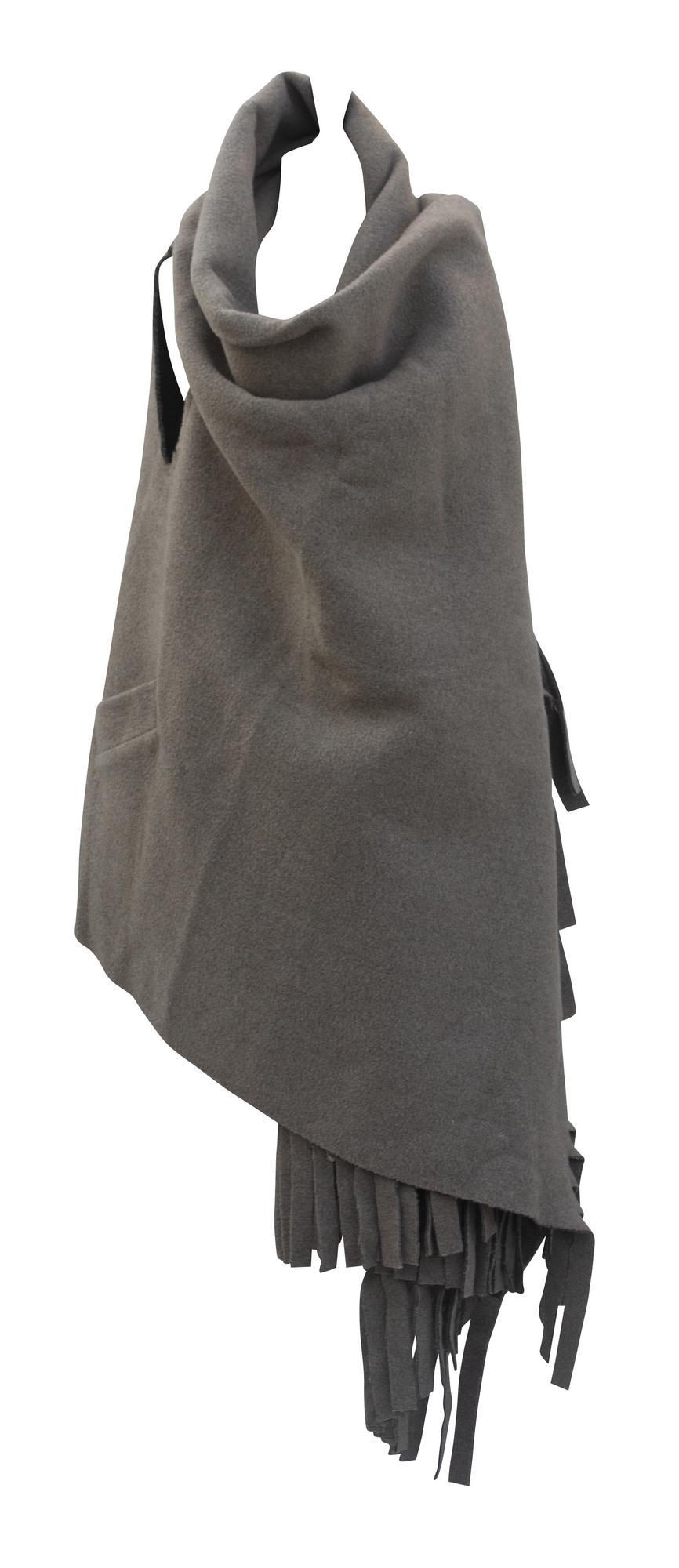Mantella coperta senza maniche, sfoderata, con frange, tasche, orli tagliati a vivo. Fine anni '90, made in England. Taglia unica. Eccellente stato.
