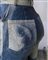 Denim trouser printed with the iconic Marlene Dietrich print. Slim fit and high waisted jeans. Top stitched in red. Orb logo button. 'Always on Camera' collection, Fall-Winter 1992. Made in England. Icon garment for collectors. UK size 10. Well preserved.