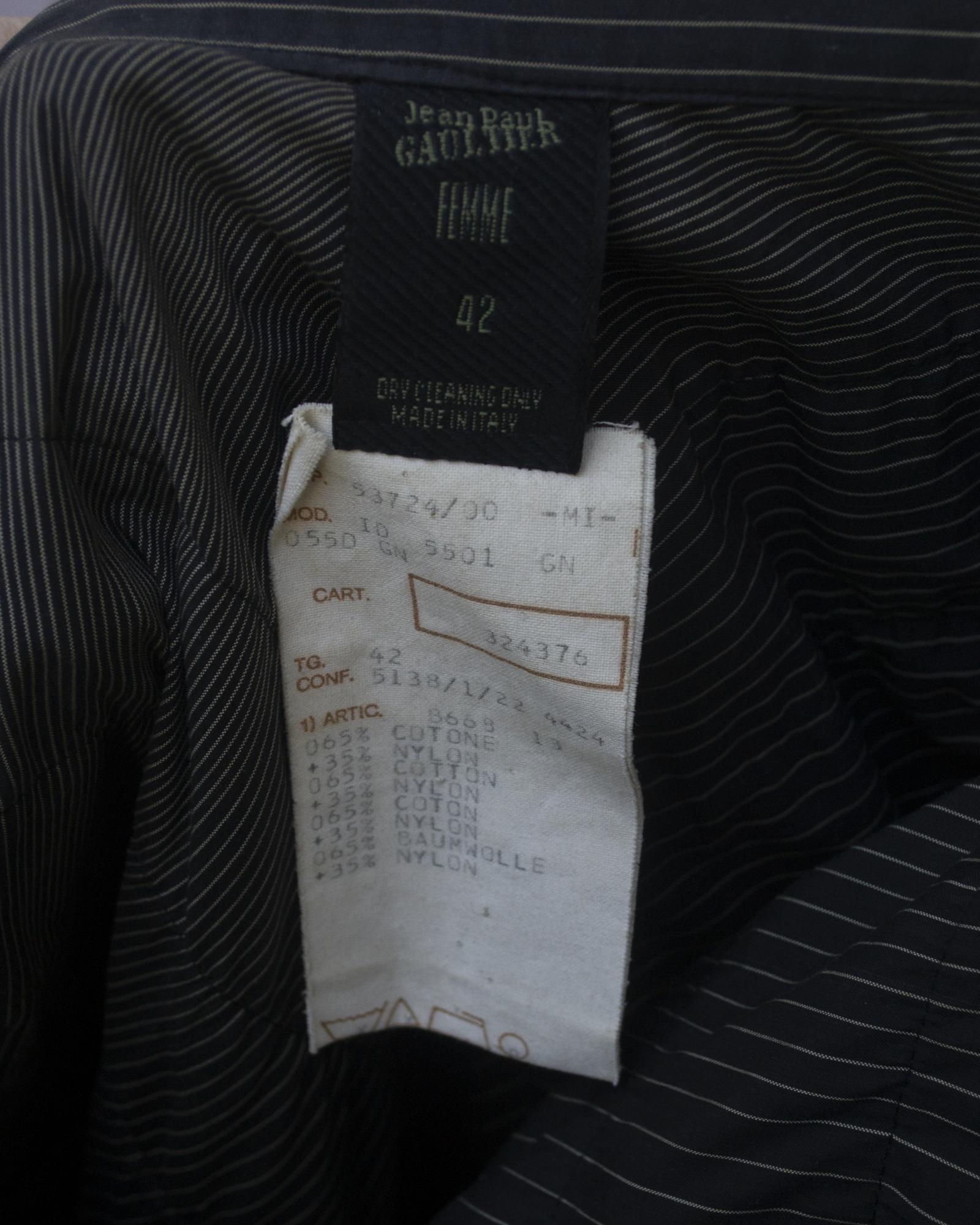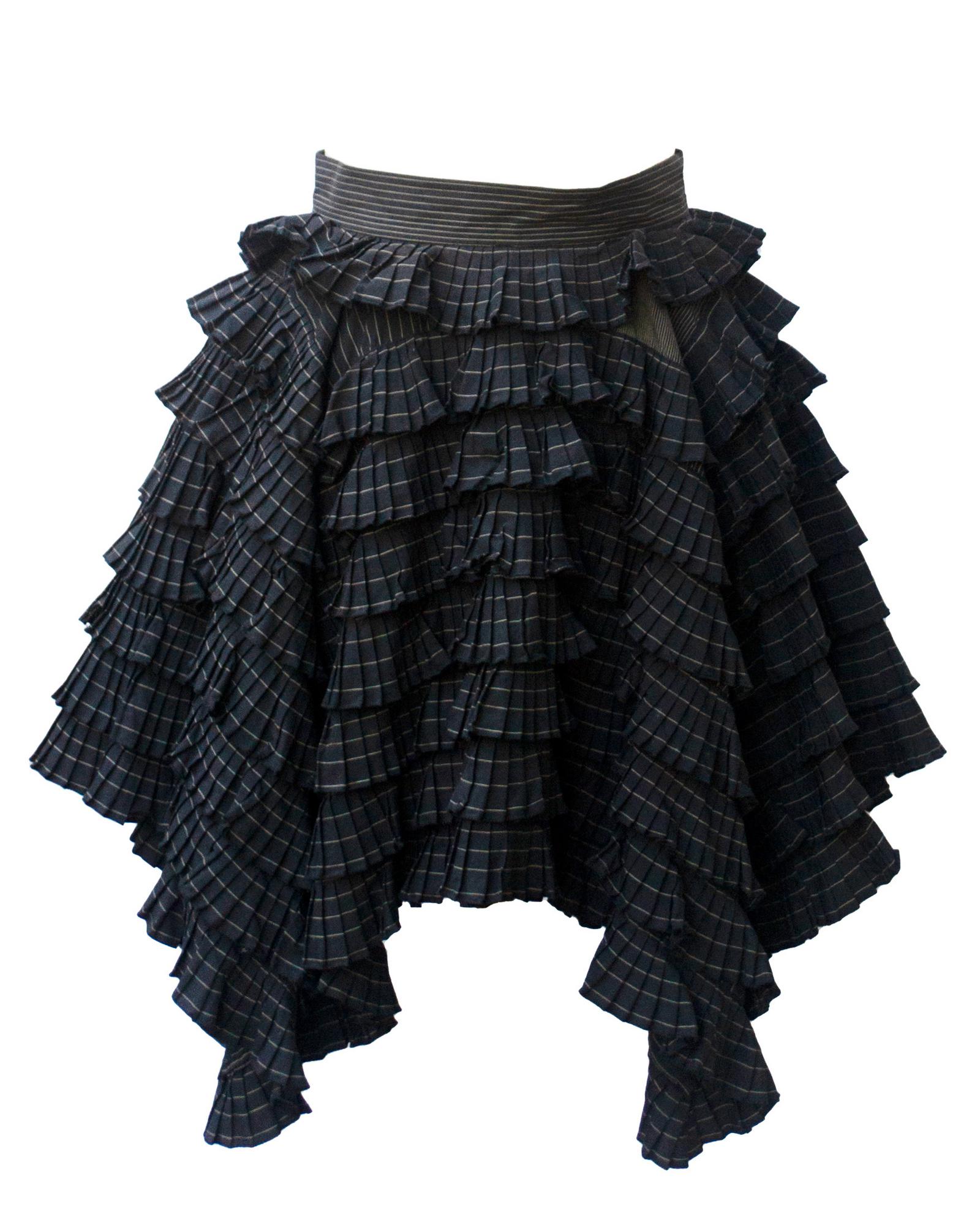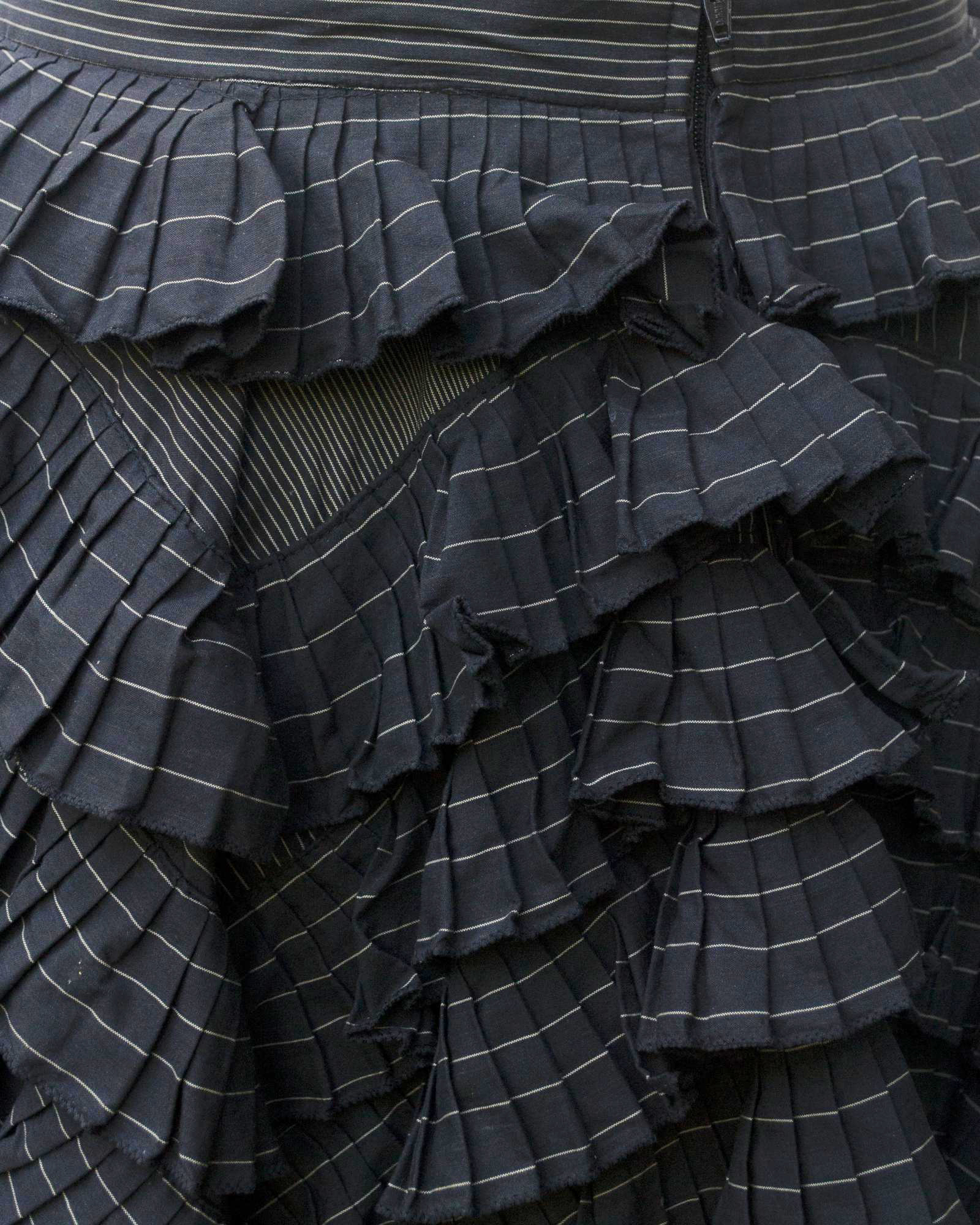 Jean Paul Gaultier RUFFLES SKIRT Description: Dark grey pinstriped cotton for...
