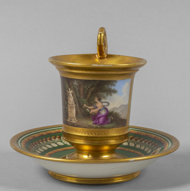 Tazza in porcellana decorata a motivi neoclassici, sec.XIX