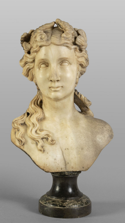 Cerere, busto in in marmo bianco poggiante su base in marmo nero, sec.XVII
