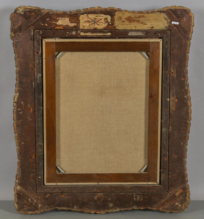 Scuola francese sec.XVIII "Fanciulla con berretto piumato" olio, cornice in legno finemente intagliato e dorato del sec.XIX