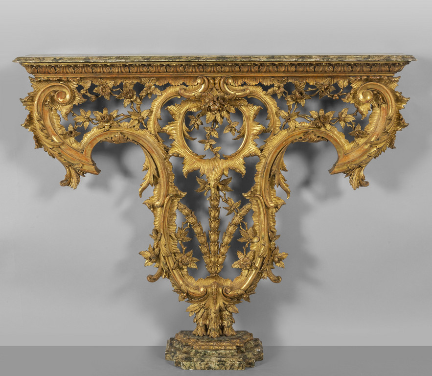 * Console Luigi XV in legno dorato e finemente