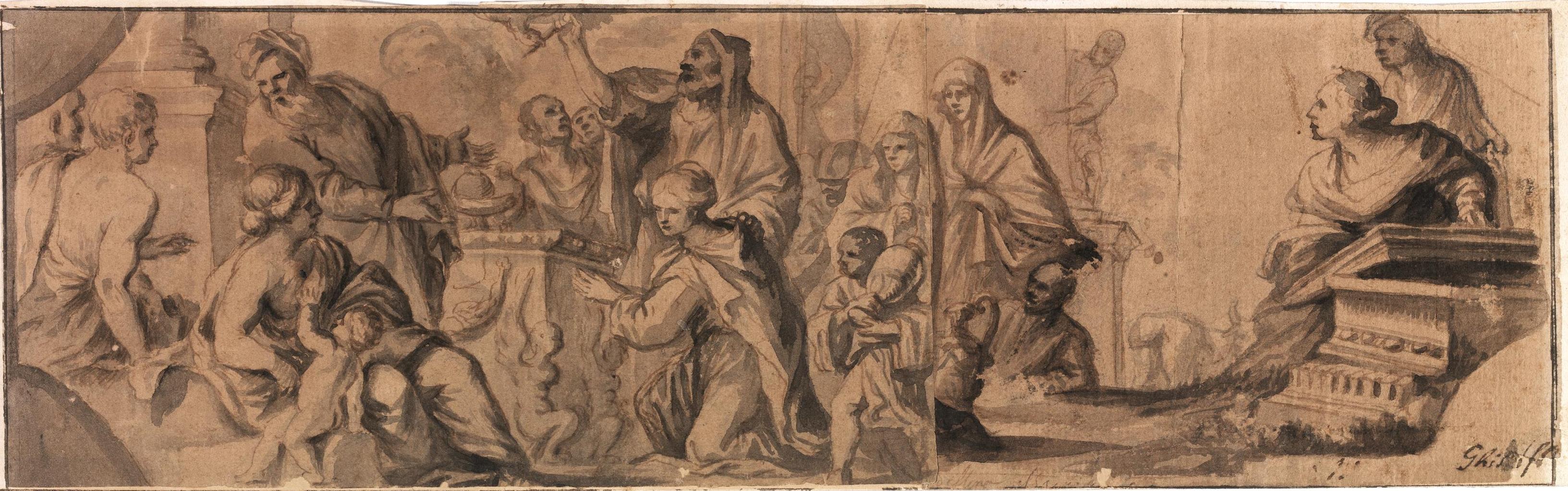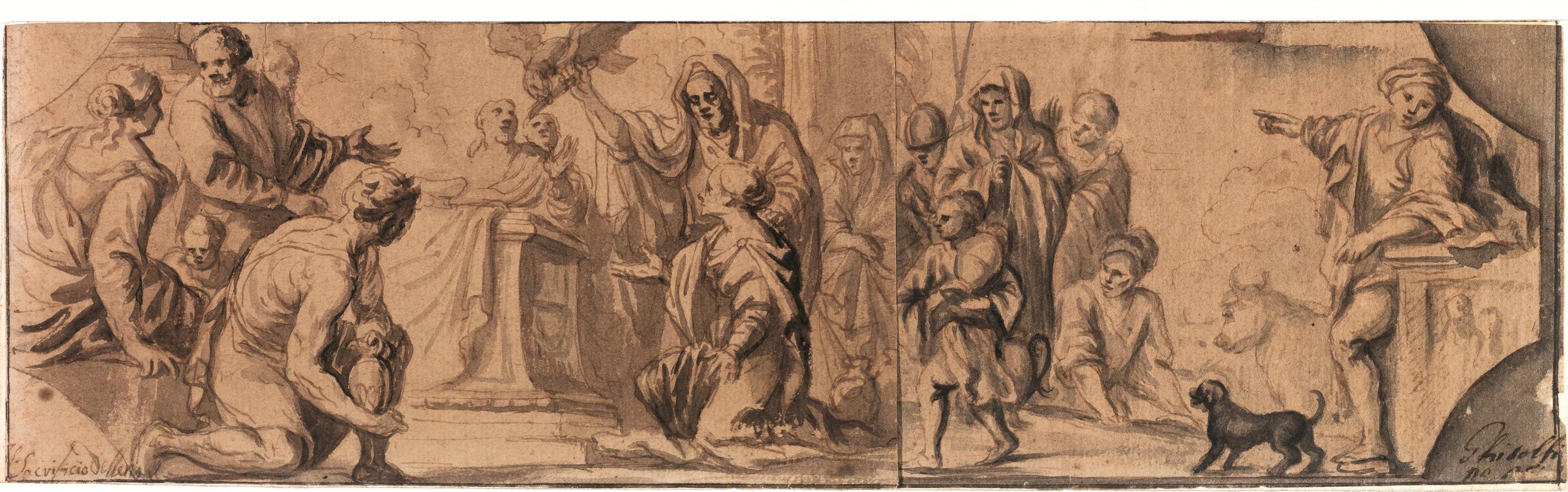 Ghisolfi, Giovanni(Milano 1623 - 1683)DUE DISEGNIIl sacrificio di Elena.Penna...