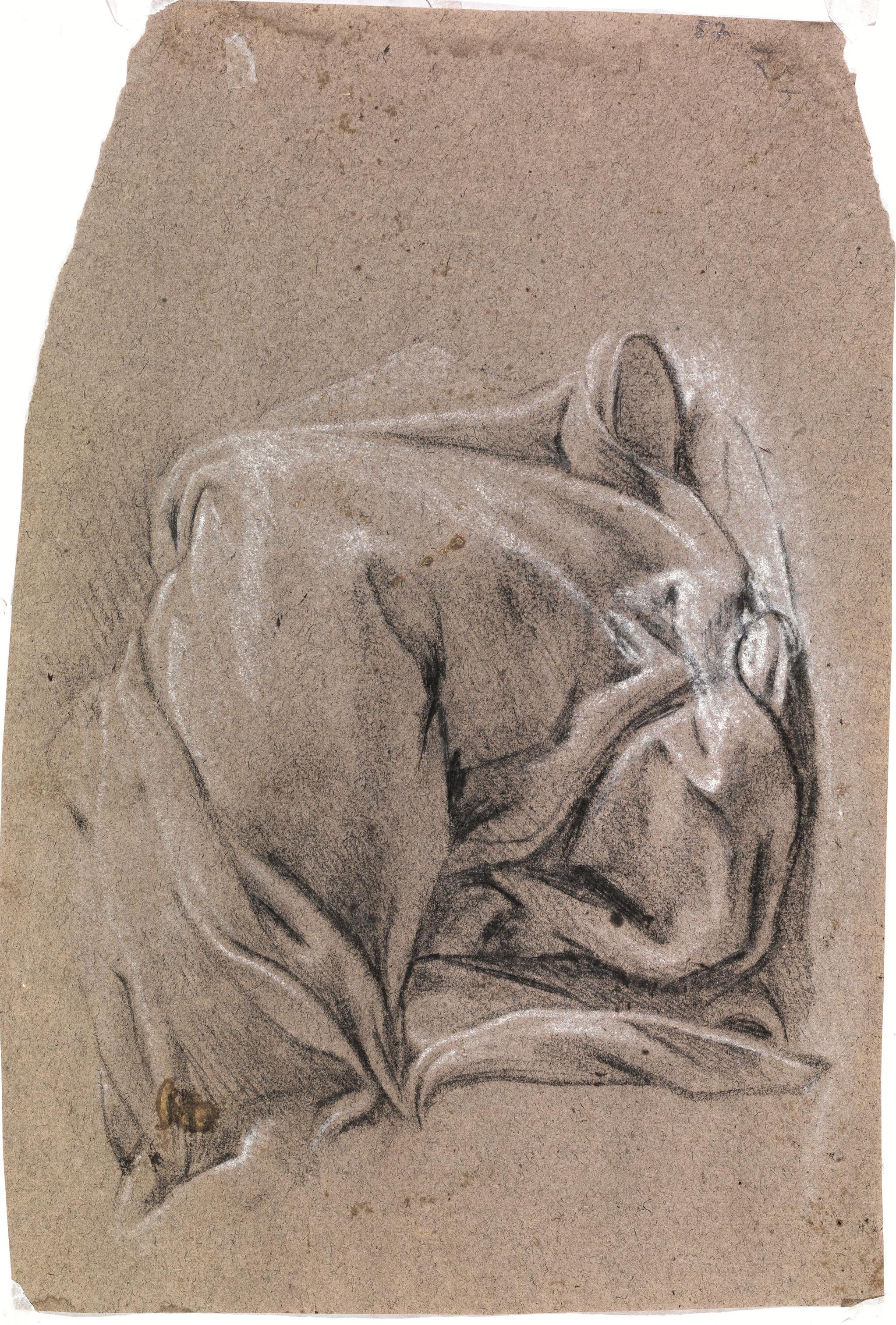 Al verso: Studio di panneggio. Matita nera con rialzi a matita bianca.