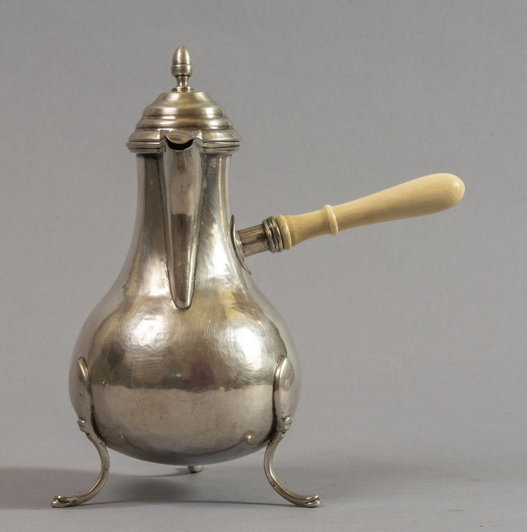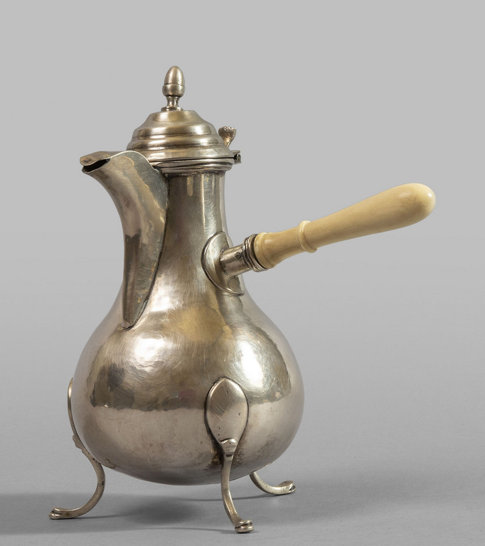 # Caffettiera in argento, punzone con la testa dell'angelo con iniziali dell'argentiere ABF, manico in avorio, fine sec.XVIII