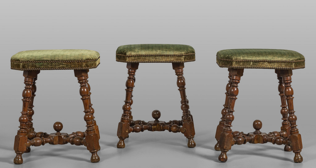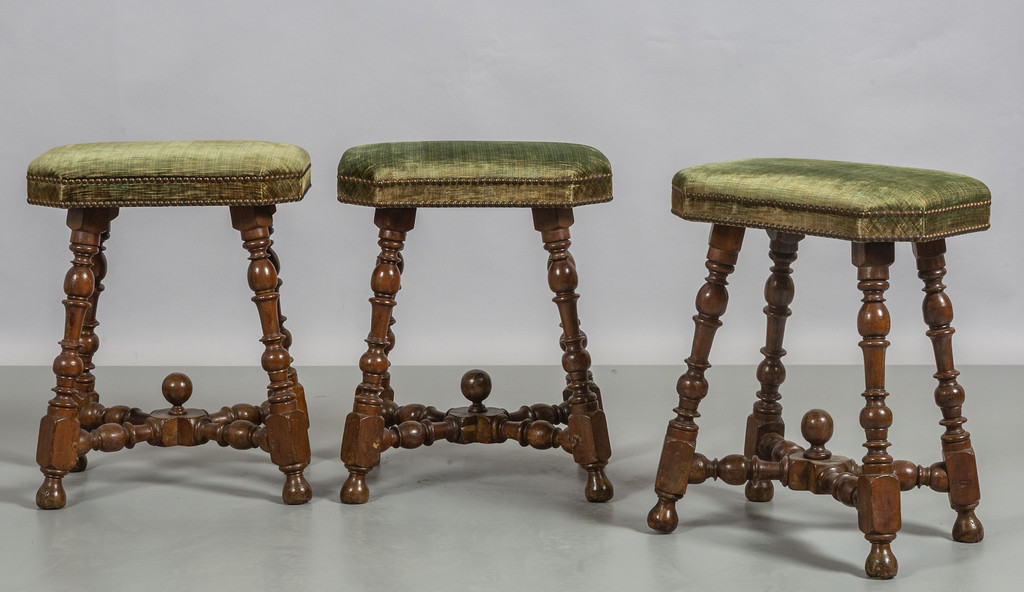 Lotto 0152 | # Tre sgabelli a rocchetto in noce, Genova fine