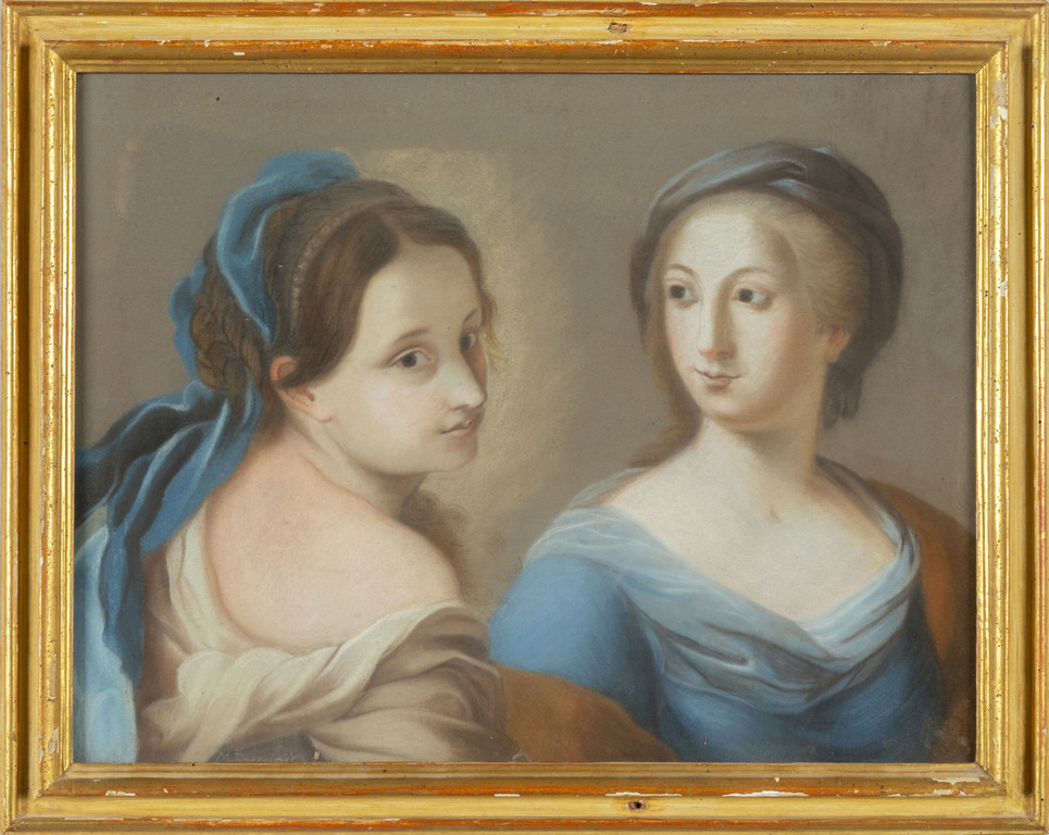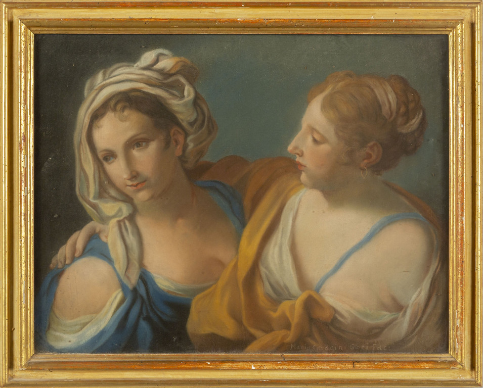 Maria Saracini Gori "Figure femminili" coppia di pastelli, uno f.to, cornici coeve in legno dorato