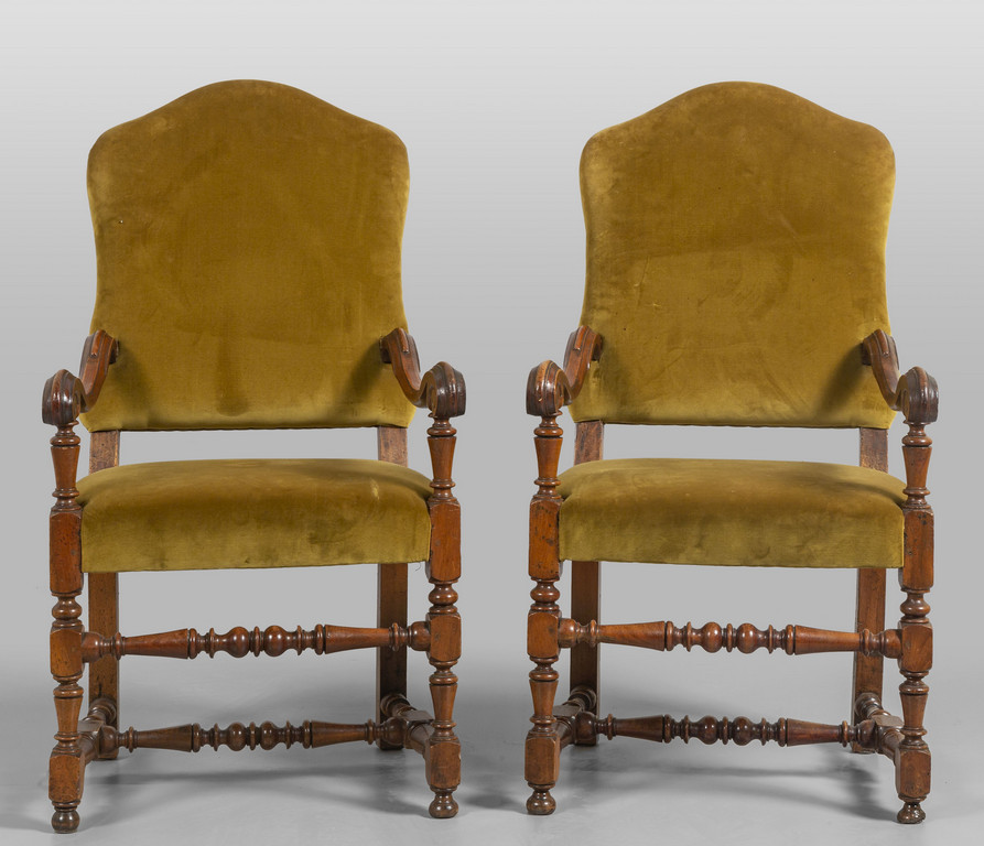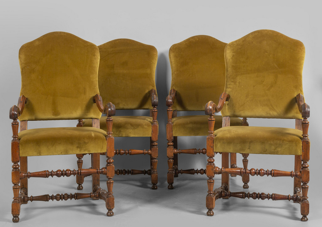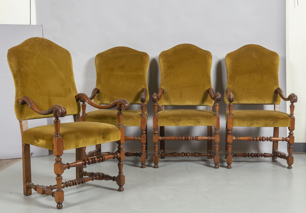 # Quattro poltrone a rocchetto, braccioli a osso di montone, Genova metà sec.XVIII