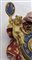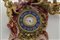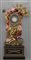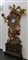 Monumentale orologio in legno finemente intagliato, laccato e dorato, nella parte inferiore una scultura raffigurante il tempo sorregge la parte superiore ove un drappeggio policromo porta al centro l'orologio, nella parte superiore figura alata e a sinistra un putto che sorregge una meridiana