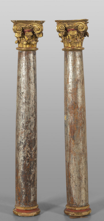 Coppia di colonne laccate a finto marmo con capitelli dorati, sec.XVIII
