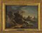 Scuola fiamminga sec.XVIII "Paesaggio con fiume, rovine e personaggi" olio su tela applicata su tavola