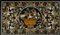 Piano in commesso di marmi policromi e pietre dure, al centro natura morta con vaso contornata da volute barocche con uva e uccelli, sec.XIX