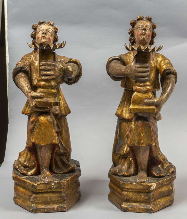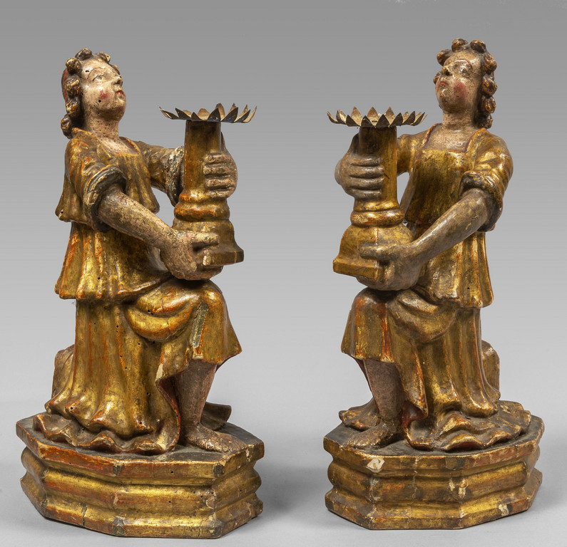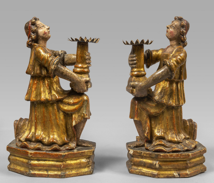 Coppia di angeli porta cero in legno intagliato e dorato, Toscana sec. XVI