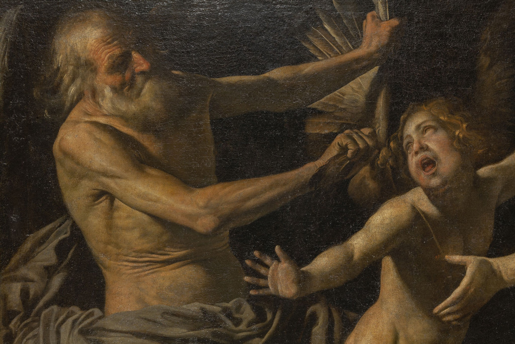 Scuola toscana fine sec.XVI "Il Tempo strappa le ali ad Amore" olio