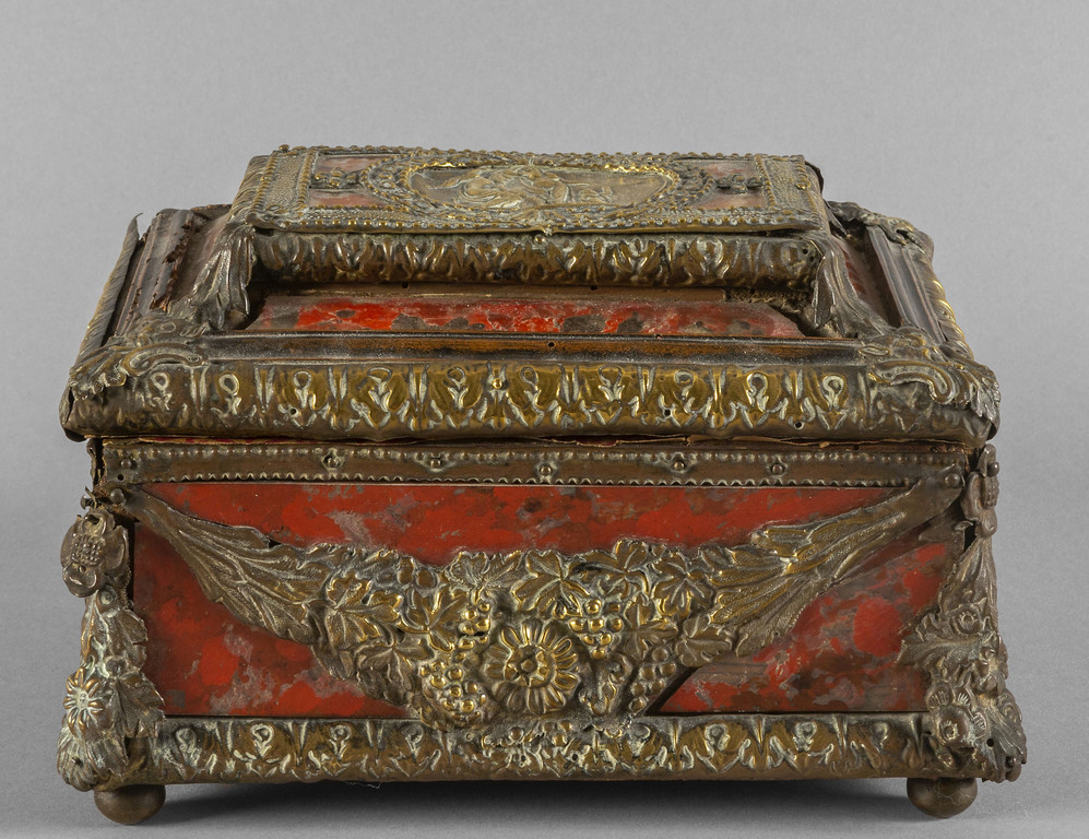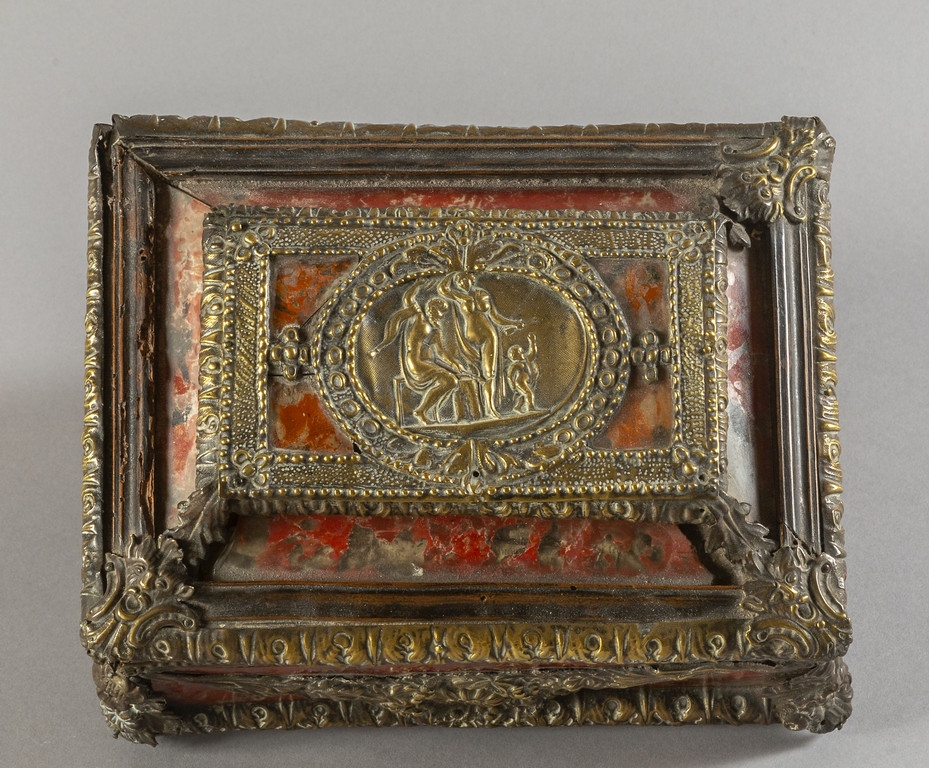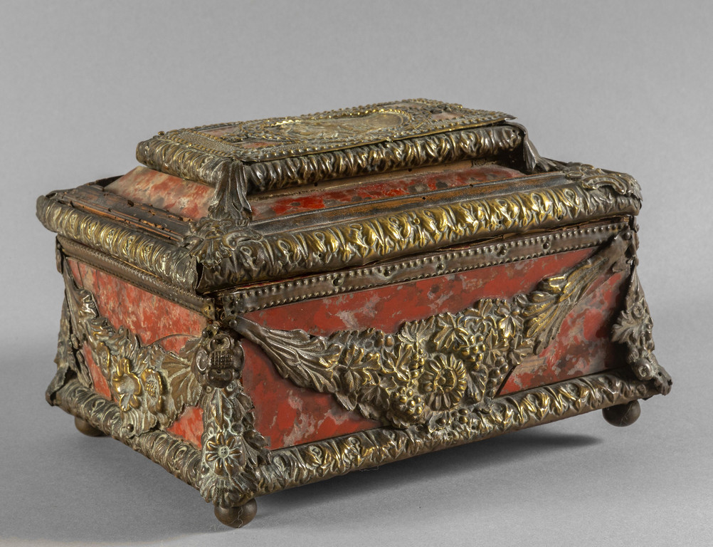 Cofanetto in vetro eglomizzato con ricca decorazione in metallo dorato, sec.XVIII