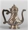 Caffettiera Luigi XV in argento finemente sbalzato, coperchio con terminale con fiore, punzone della Torretta, Genova anno 1775