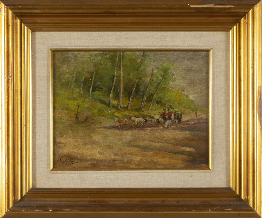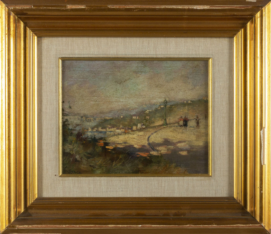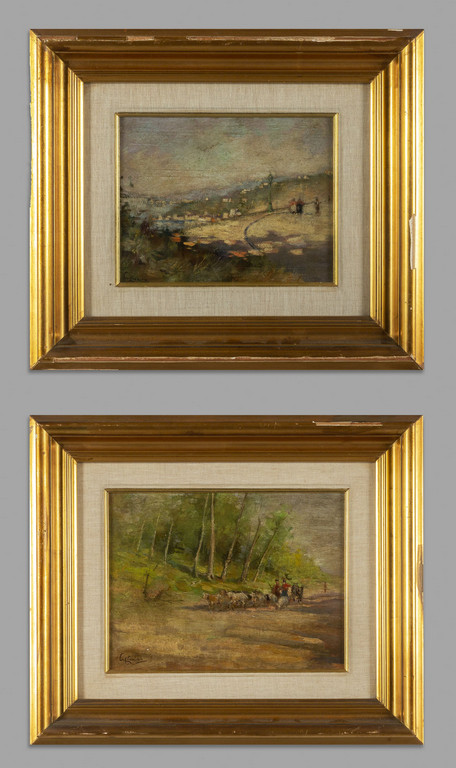 Scuola italiana sec.XX "Paesaggi" due olii su tavoletta f.ti