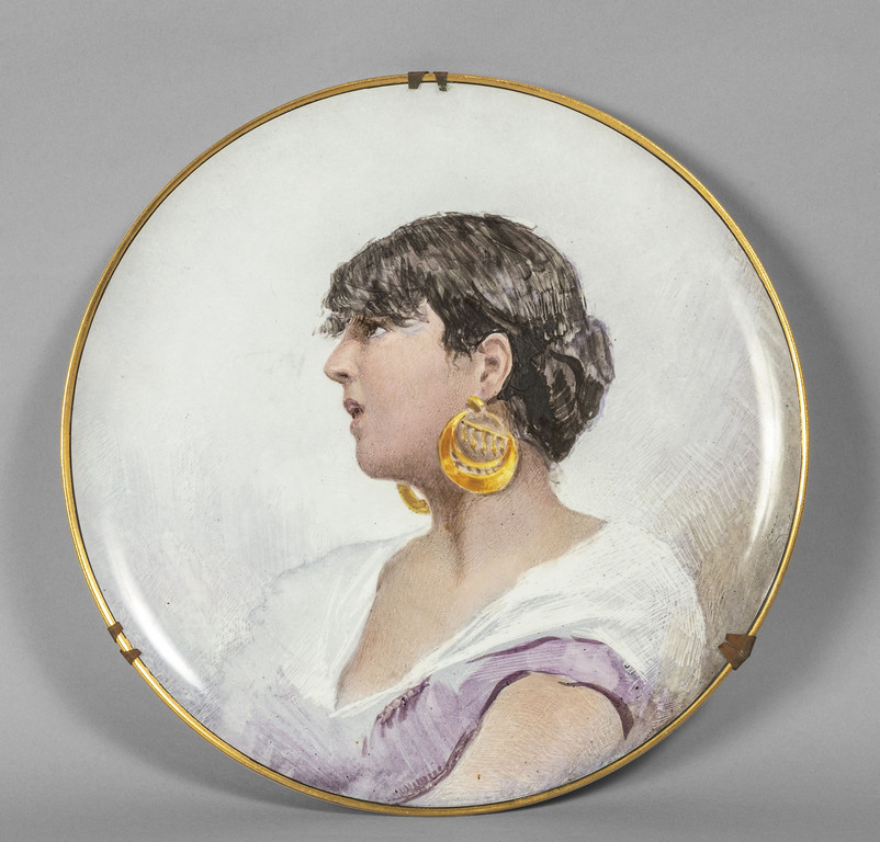 Piatto in terraglia decorato con figura di popolana, fine sec.XIX