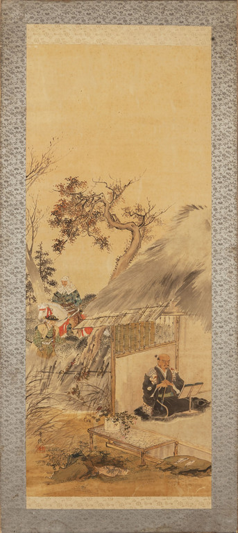 Pannello raffigurante letterato samurai, Giappone sec.XIX