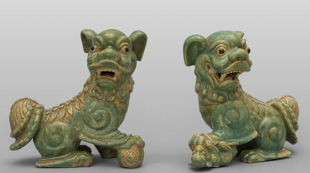 Lotto 0529 | Coppia di cani di Pho in gres smaltato, Cina