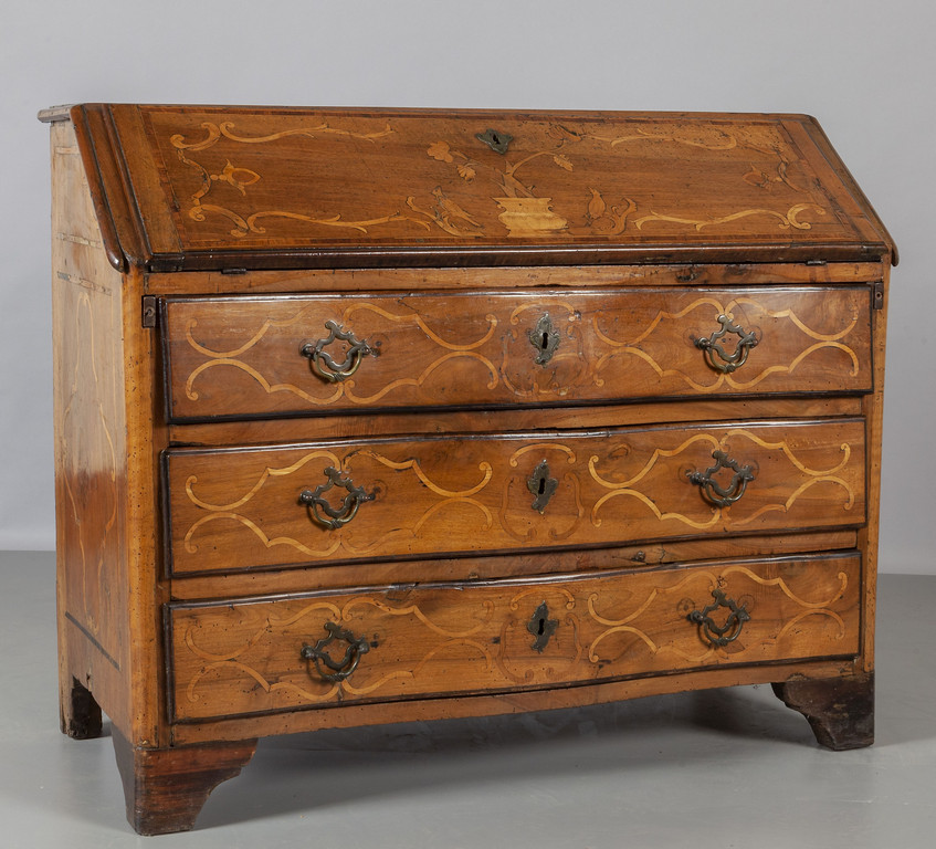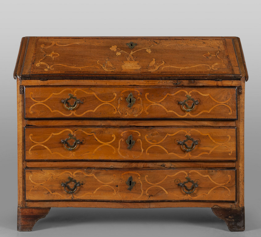 Ribalta Luigi XIV in noce intarsiata a ramage e fiori, Piemonte I metà sec.XVIII