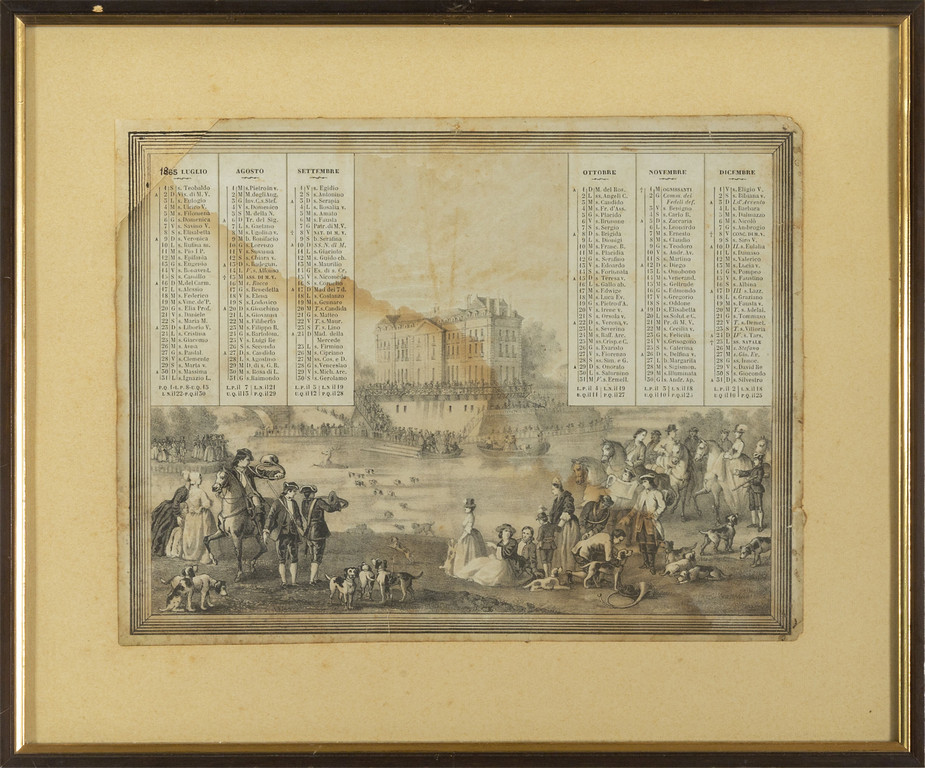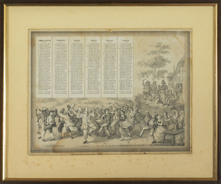 Precedente Lotto 0571 Successivo Aste Boetto - Via Mura dello Zerbino 10R, 16122 Genova ASTA DI ANTIQUARIATO E ARTE ORIENTALE Asta di Antiquariato e Arte Orientale martedì 27 settembre 2022 ore 10:30 (UTC +01:00) # Calendario dell'anno 1865, due stampe # Calendario dell'anno 1865, due stampe