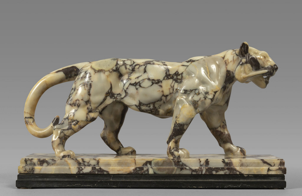 Pantera, scultura Decò in alabastro, inizi