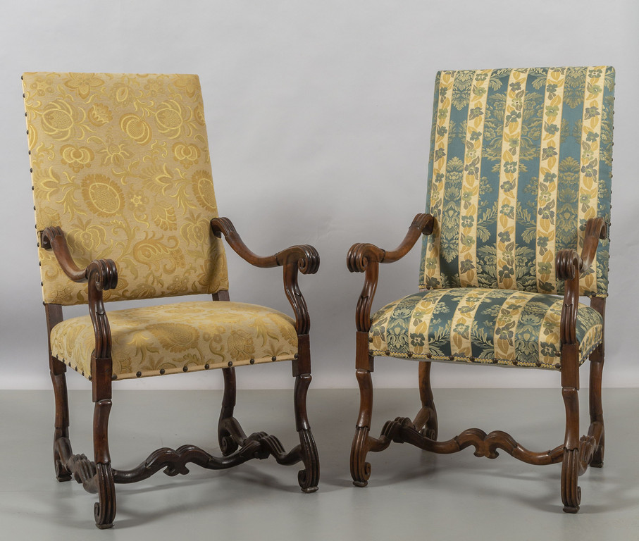 Lotto 0616 | Coppia di poltrone ad osso di montone in noce,