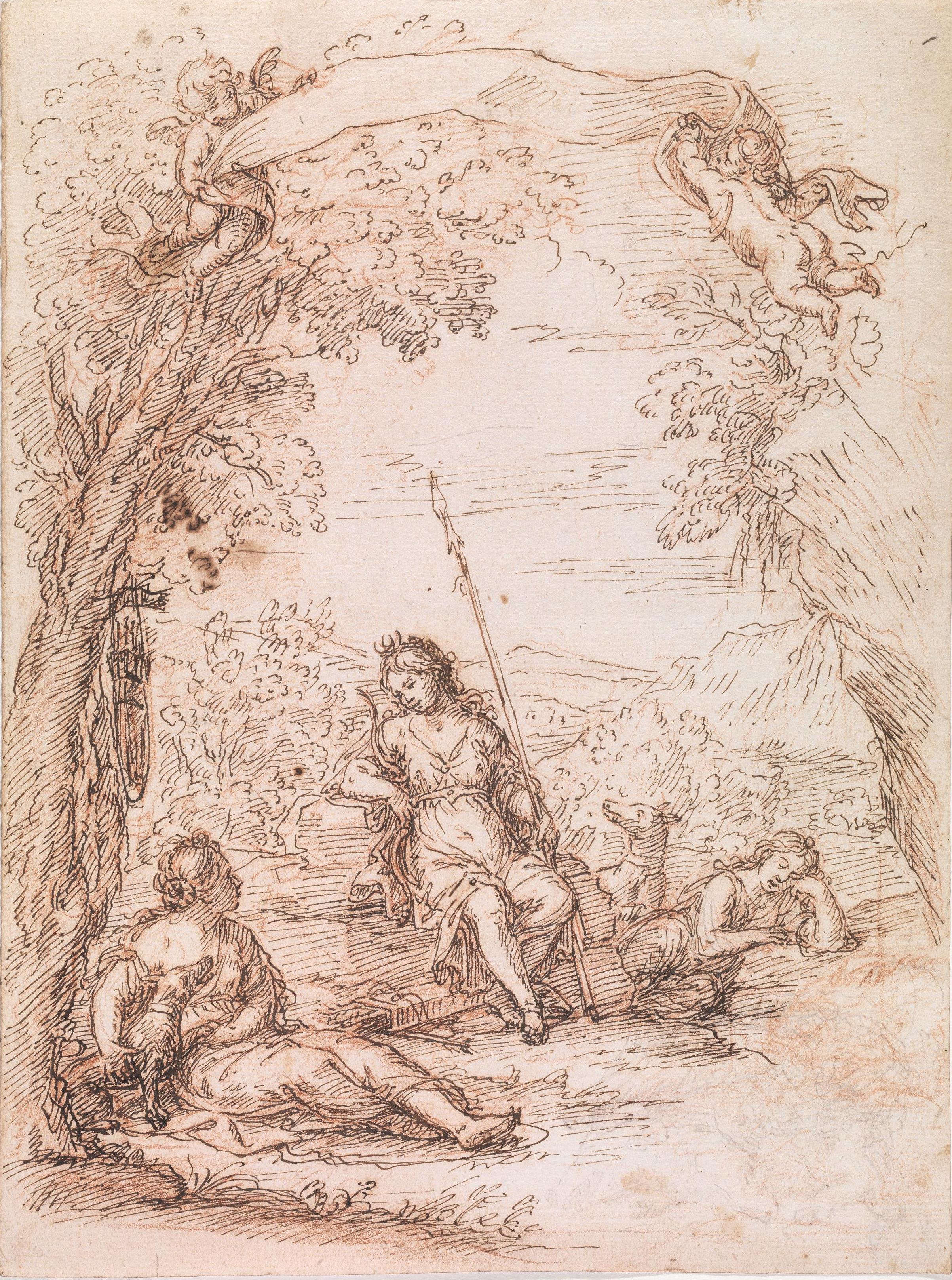 Zoboli, Giacomo(Modena 1681 - Roma 1767)DIANA E DUE NINFEPenna e inchiostro...
