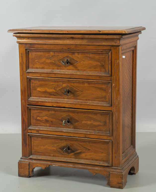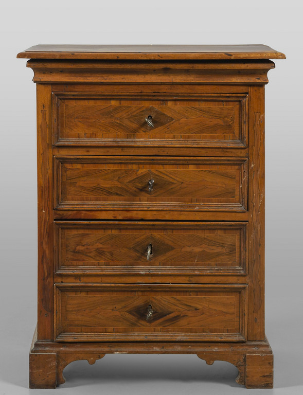Piccolo comò a quattro cassetti in noce filettato, sec.XVIII