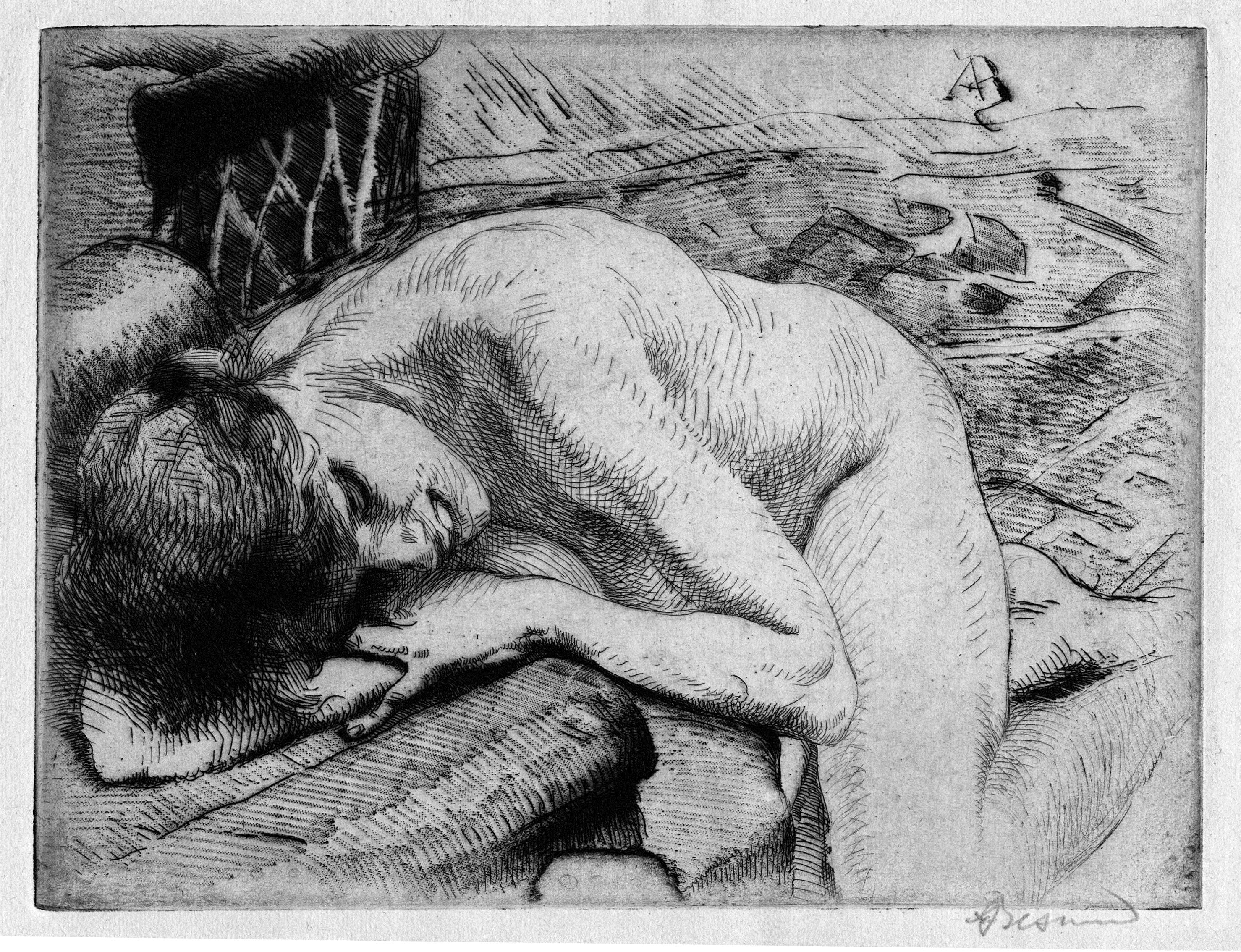 Besnard, Paul Albert(Parigi 1849 - 1934)LE MODÈLE ENDORMI À TERRE....