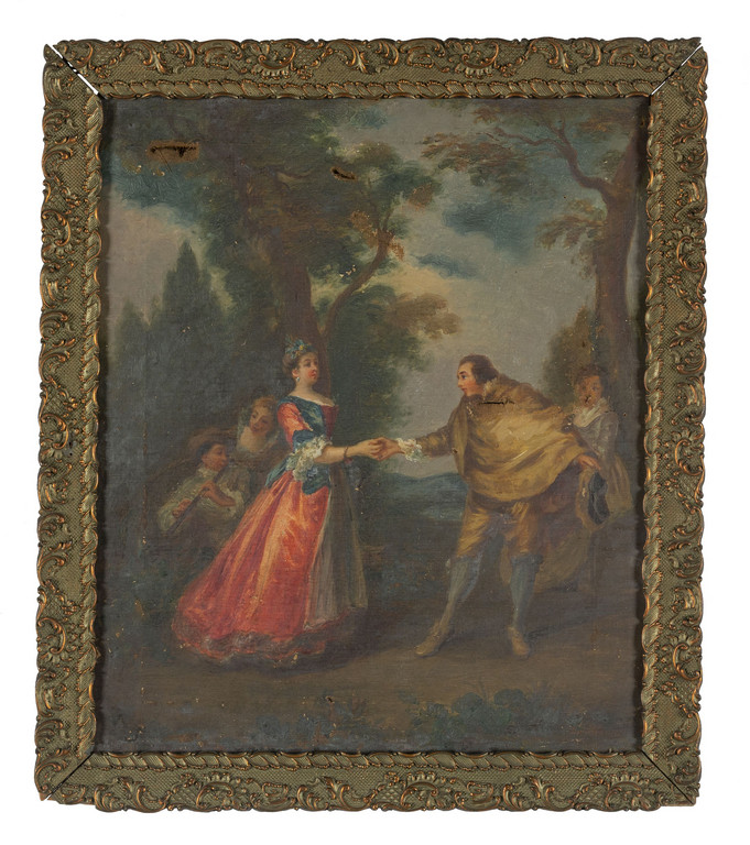 "Scena galante" olio, sec.XIX<br>cm. 40x48