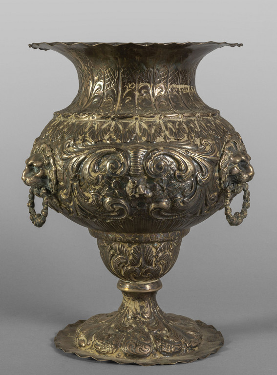 Lotto 0735 | Grande vaso in argento sbalzato, tre manici