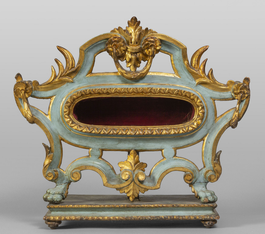 Reliquiario Luigi XIV in legno intagliato e dorato, Toscana sec.XVII/XVIII