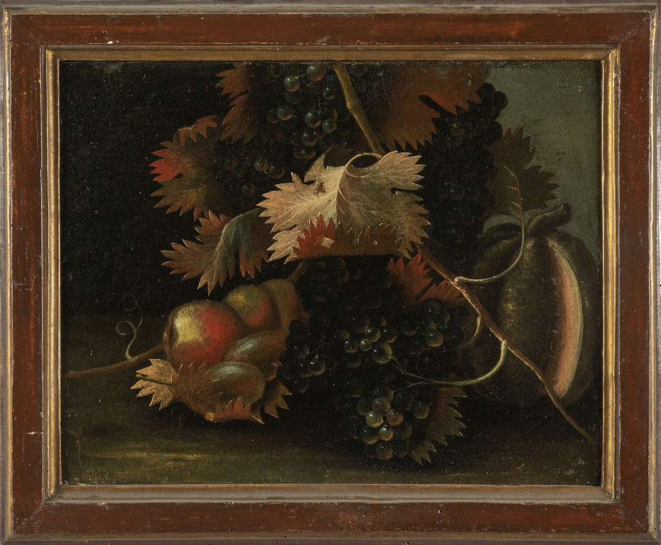 Scuola emiliana sec.XVII "Nature morte con cocomero e uva" coppia di olii