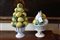 Due vasi in ceramica policroma decorati con frutta